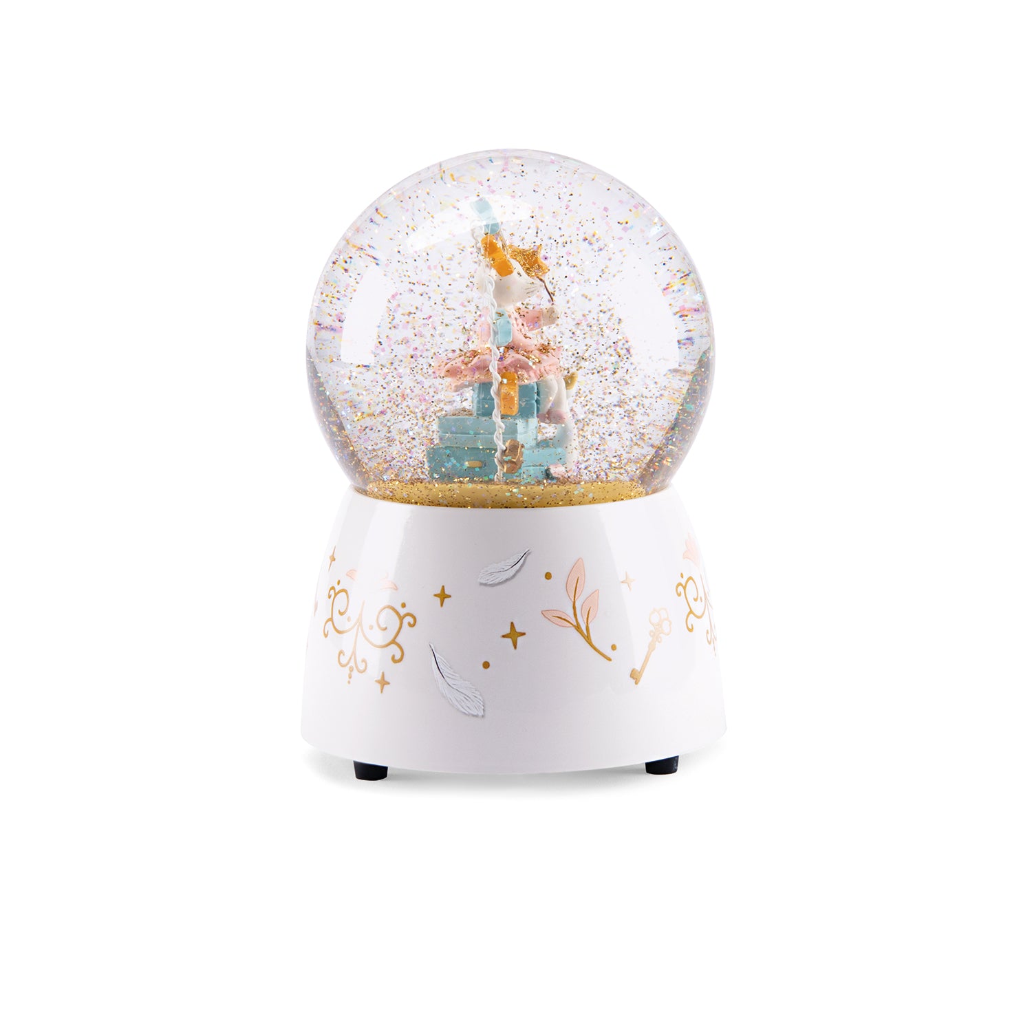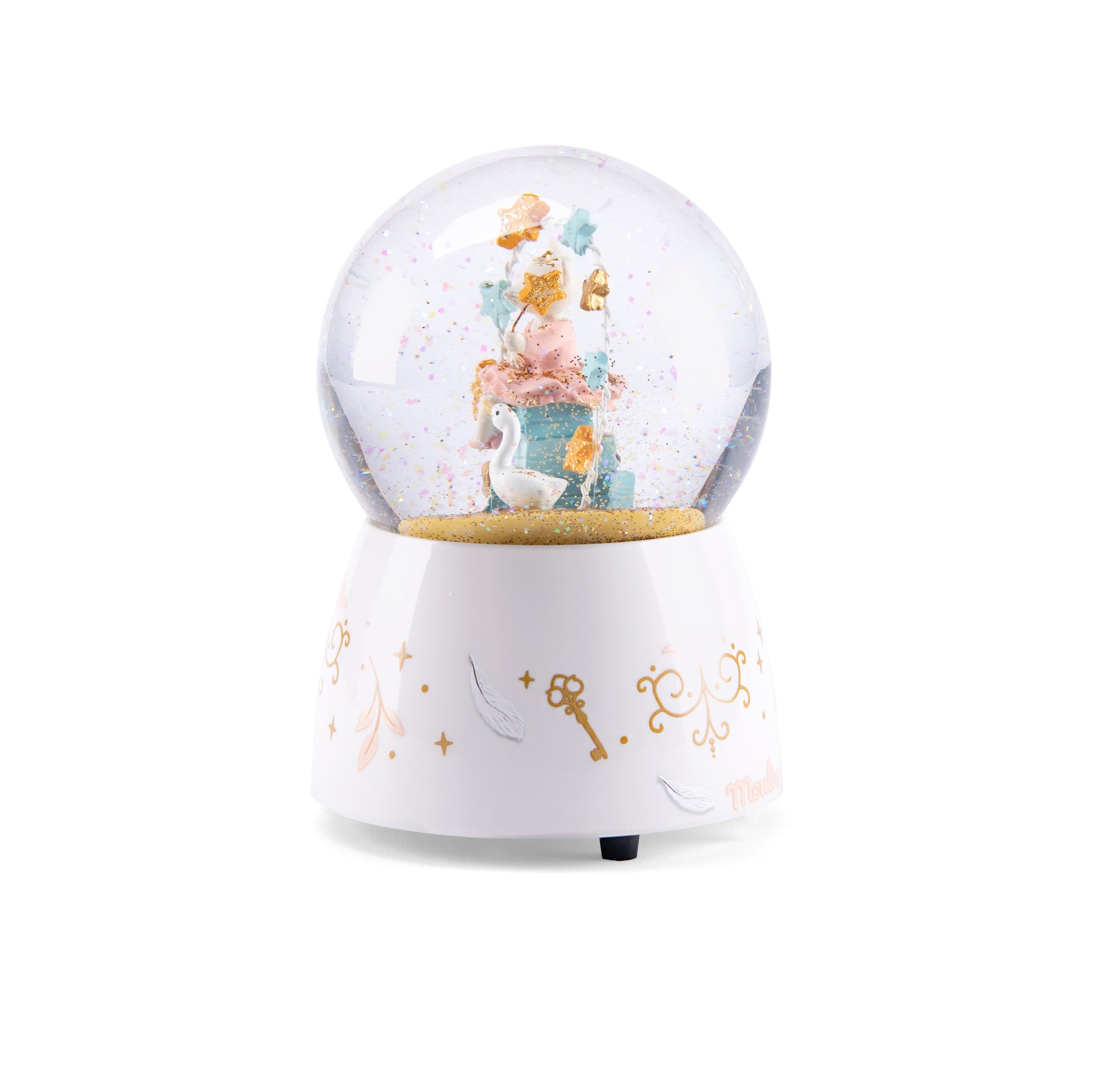 Deze betoverende muzikale sneeuwbol laat een kleine muis en een sierlijke zwaan samen dansen in een wolk van holografische glitters. Draai aan het mechanisme en de zachte melodie vult de kamer—ideaal voor een rustig bedritueel. Een schitterend decoratiestuk voor de babykamer én een perfect kraam- of verjaardagscadeau.