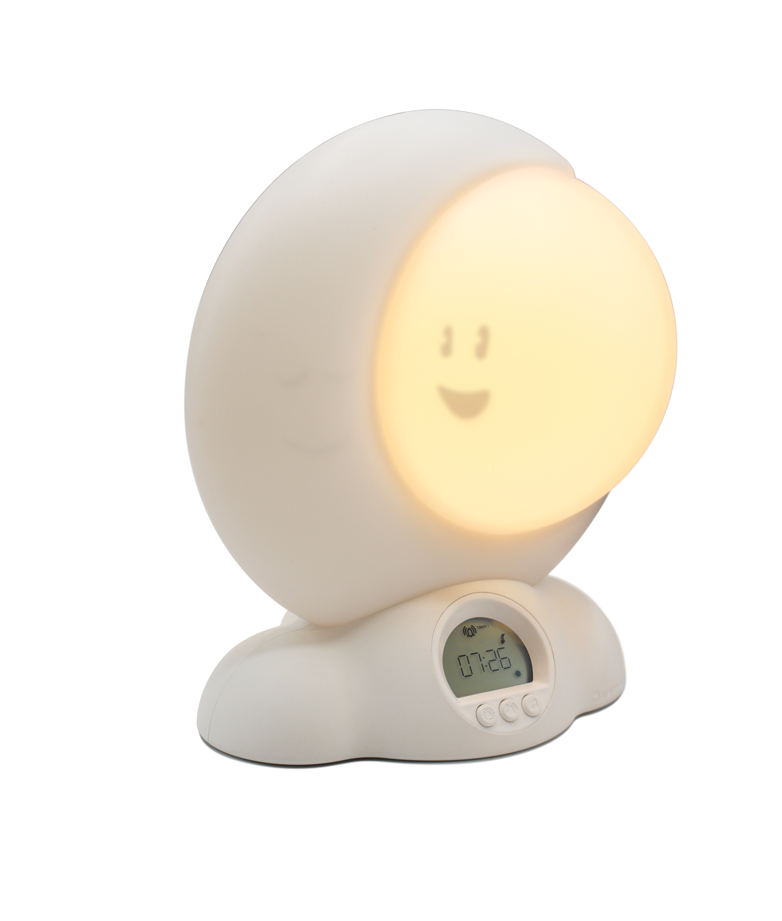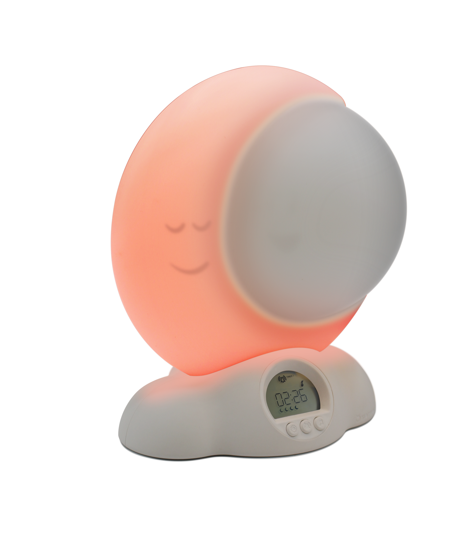 KIDYMOON is een unieke slaaptrainer : Met behulp van de maan (nacht) en de zon (ochtend) geeft hij aan wanneer je kind moet opstaan of nog even mag blijven liggen. Uw kind moet hiervoor nog geen klok kunnen lezen. Het licht verandert geleidelijk van maan naar zon en kan worden begeleid door natuurgeluiden. Kan ook worden gebruikt als nachtlampje met een timer van 15 minuten.